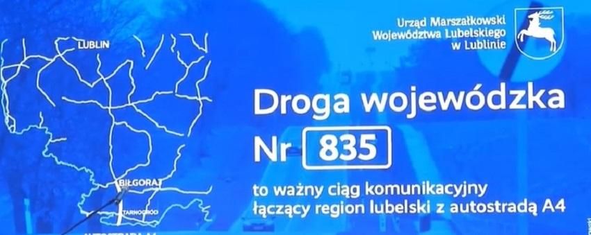 Uroczystość miała miejsce w sobotę, 19 grudnia 2020 r. w Lubelskim Centrum Konferencyjnym. Obecny był m.in. wicepremier Jacek Sasin, Minister Aktywów Państwowych. Droga krajowa nr 835 to ciąg komunikacyjny o ogromnym znaczeniu dla regionu - łączy on Lublin z autostradą A4. Dzięki podpisywanej umowie ma zostać zmodernizowany ostatni, 25-kilometrowy odcinek drogi na terenie gmin: Biłgoraj, Książpol oraz Tarnogród. To jedna z najbardziej ruchliwych dróg w woj. lubelskim. Inwestycję będzie prowadziło konsorcjum firm Unibep S.A. z Bielska Podlaskiego (lider) oraz Przedsiębiorstwo Drogowo – Mostowe S.A. w Dębicy. Inwestorem jest Zarząd Dróg Wojewódzkich w Lublinie. Wartość wynagrodzenia za wybudowanie drogi to i ok.128,4 mln zł netto, z czego wynagrodzenie Unibep SA to ok. 38,5 mln zł netto. - Dobrze, że z ruszyły inwestycje infrastrukturalne na wschodzie Polski – powiedział Leszek Gołąbiecki. – Skorzystają z tego m.in. firmy z tego regionu, jak chociażby nasze przedsiębiorstwa. Obiecuję, że będziemy tak organizować pracę, by były jak najmniejsze utrudnienia. Skupimy się na dobrej pracy – harmonogramie i jakości. Inwestycja jest współfinansowana z Regionalnego Programu Operacyjnego Województwa Lubelskiego na lata 2014-2020. Prace potrwają do 2022 roku.