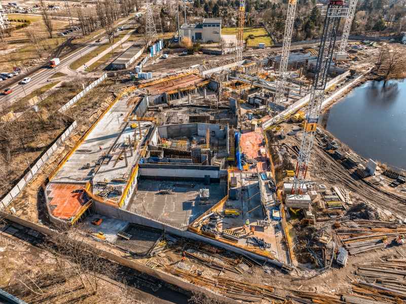 - Aktualnie projektujemy i przymierzamy się do wykonania elewacji wraz z fasadą aluminiową. Jest to bardzo skomplikowana część projektu, którą należy wykonać w modelu 3D. Ma ona odzwierciedlać falę występującą na stawie, który położony jest na terenie inwestycji – wyjaśnia Paweł Prażmowski, Dyrektor Kontraktu Unibep SA. – Ponadto obiekt posiada wysokie wymogi pasywne i akustyczne. Dostawcy systemów aluminiowych nie posiadają odpowiednich dokumentów oraz badań, które umożliwiałby realizację fasady zgodnie z wytycznymi projektu. Konieczne jest przeprowadzenie dodatkowych analiz w akredytowanych laboratoriach w Niemczech lub Szwajcarii.