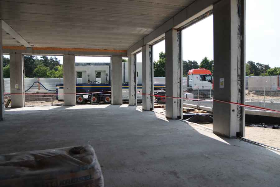 - Trwają prace przy wznoszeniu konstrukcji prefabrykowanej budynku. Na ukończeniu jest strop nad poziomem plus dwa. Przymierzamy się do ustawienia pierwszych elementów pionowych na kondygnacji trzeciej, tj. słupy prefabrykowane oraz ściany wewnętrzne klatek schodowych – mówi Adam Klimczak, Kierownik Kontraktu w Unibep, dodając: - W garażu podziemnym zakończyliśmy zadania związane z termoizolacją stropu oraz trzonów klatek schodowych i przystąpiliśmy do prac instalacyjnych branży sanitarnej. W lipcu planujemy rozpoczęcie montażu stolarki okiennej oraz prac z zakresu instalacji elektrycznych.