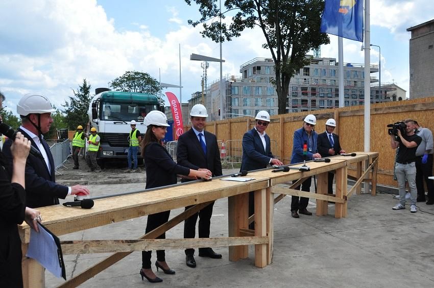 Na zakończenie uroczystości przedstawiciele inwestora, miasta oraz generalnego wykonawcy symbolicznie rozpoczęli pracę maszyny, która wykonywała kolumny betowe pod budynek.