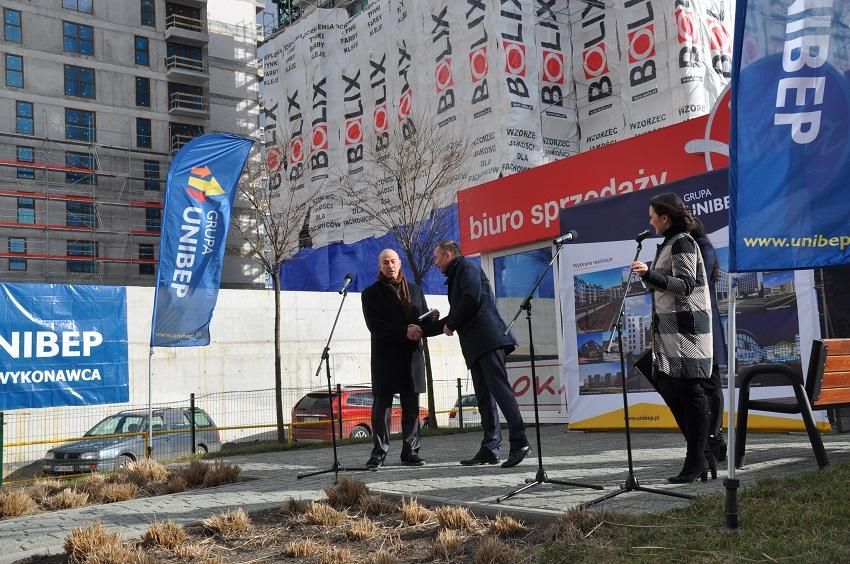 We rarely meet with the investor - it’s a good news. Good, since it means that there are no problems with the investment execution – said Leszek Gołąbiecki, the President of the Management Board of Unibep S.A. during topping out ceremony on the site. He thanked all who work on the site.