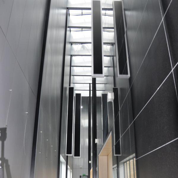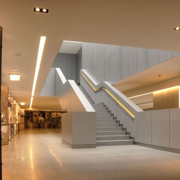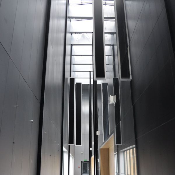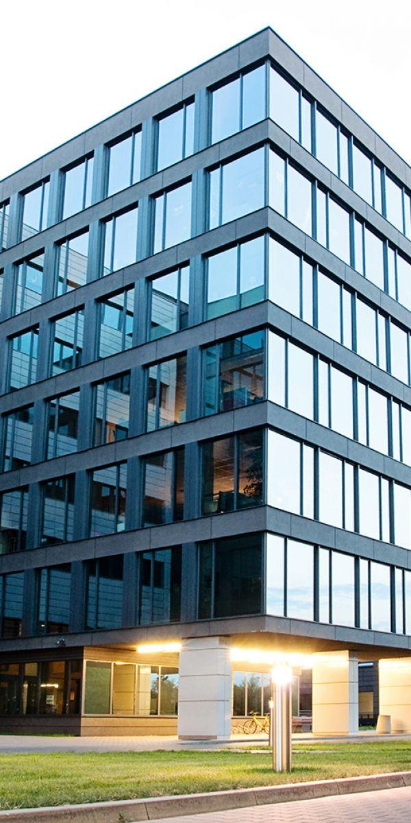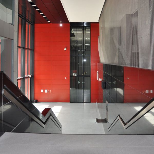 The building is distinguished by its unique and elegant architecture. The dynamic, modern and light form of the office building has been achieved through the composition of glass and stone planes, as well as the intertwining longitudinal ceiling strips of the buildings. The juxtaposition of two materials - dark stone and glass - allowed the creation of a modern, elegant and representative building. In addition, the building's large glass planes reflect the characteristic brick facades of the nearby Warsaw Uprising Museum building, creating a unique dialogue and testimony to two eras in the history of Warsaw.