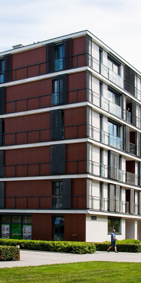 The third stage is a six-story building with a two-story dominatrix, with a total of 159 apartments with room sizes ranging from 28 to 152 sqm. On the high floor there are two-level apartments with attached terraces, from which there is a beautiful view of the immediate area.
