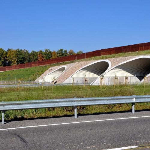 - Obiekt PZ-9: wiadukt o ustroju gruntowo-powłokowym z blach falistych. Trzy przekroje otwarte łukowe oparte na fundamentach żelbetowych. Szerokość obiektu 50 m, długość całkowita ok. 310 m