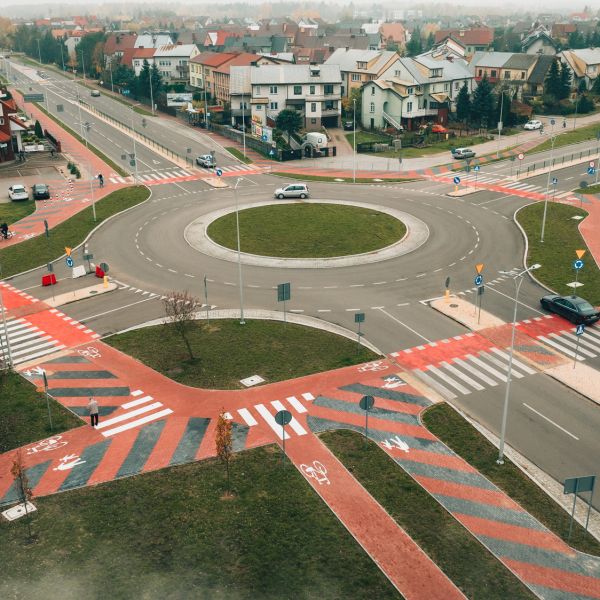 • nowe rondo u zbiegu z ulicą Brata Żebrowskiego i Pomian