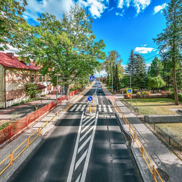 • rozbudowa skrzyżowania, budowa chodnikówi, zatoki autobusowej