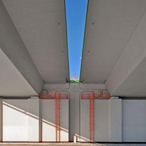 - konstrukcje monolityczne fundamentów, przyczółków, podpór pośrednich, płyt przejściowych, kap chodnikowych z betonu konstrukcyjnego w deskowaniu systemowym;