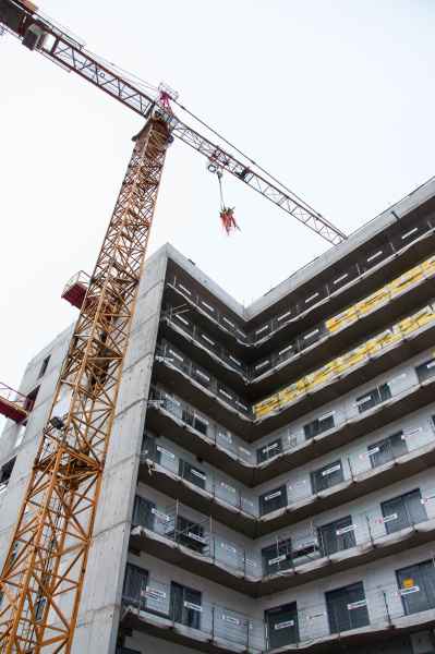 - Pomimo dość trudnej sytuacji na rynku budowlanym spowodowanym wojną za wschodnią granicą i odpływem części pracowników, prace na budowie przebiegają zgodnie z założeniami – skomentował Łukasz Onuszko, Kierownik Budowy Unibep SA, i dodał – Konstrukcja budynku ma kształt litery „C”, składa się z 2 kondygnacji podziemnych i 9 kondygnacji nadziemnych. Dokonaliśmy prefabrykacji biegów schodowych i balkonów - tych drugich zamontowaliśmy na budowie aż 424 szt. Roboty żelbetowe zostały zakończone, aktualnie trwają roboty wykończeniowe i elewacyjne.