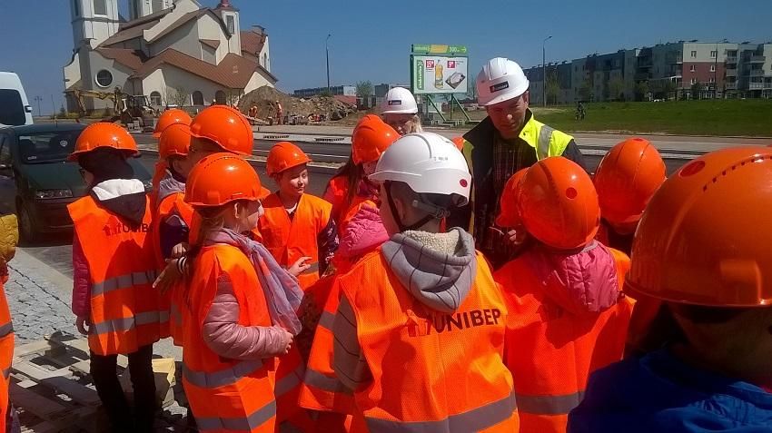 Our road crew organised a very interesting meeting. On the construction site at ul. Zawadzka in Łomża, Unibep (the construction contractor) together with the authorities of Łomża organised a meeting with students of Primary School No. 10, who walk past the investment when going to lessons.