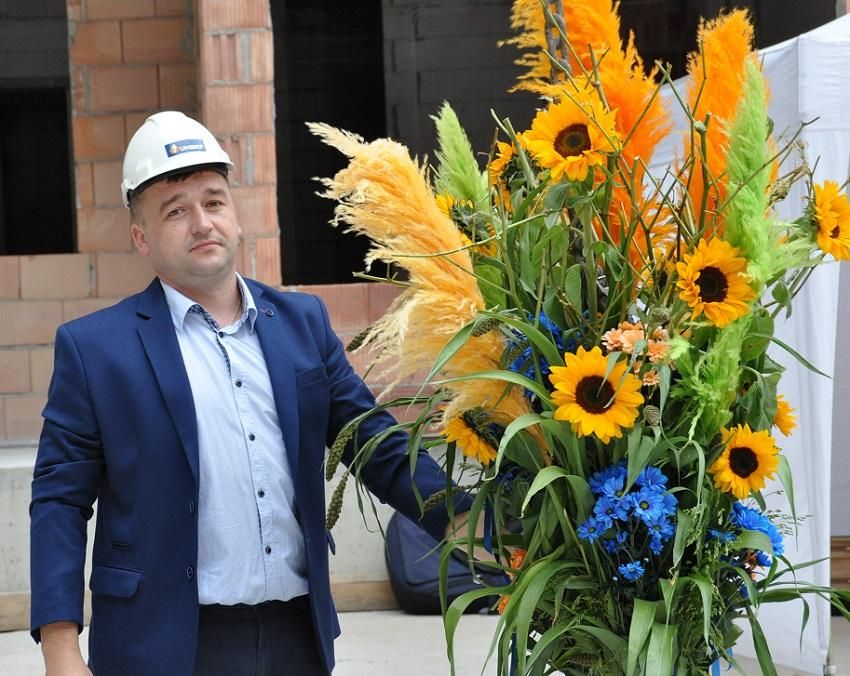 Tomasz Grygoruk, the construction manager, decorated the ridgepole (picture).