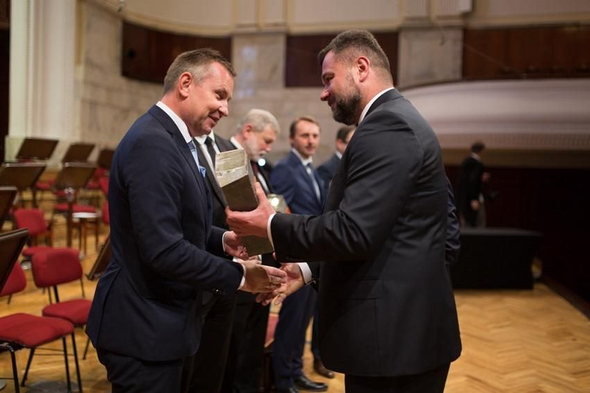 In the photo: Leszek Gołąbiecki, the president of the board of Unibep SA (on the left) receives the award on behalf of the company