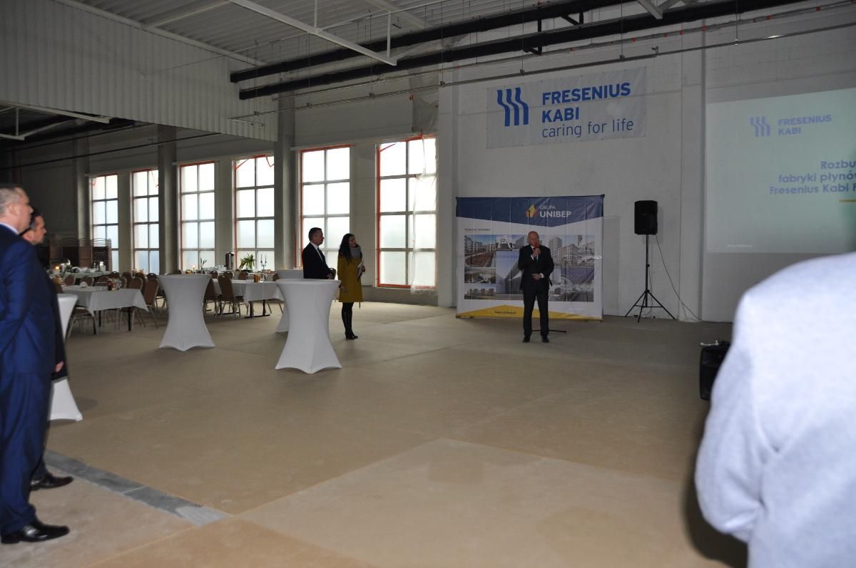 Topping out ceremony at the new production hall of the infusion fluid manufacturing plant of Fresenius Kabi company in the city of Kutno