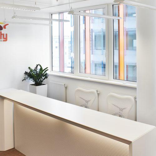 Zakres robót obejmował roboty budowlano-montażowe i wykończeniowe, wentylacyjne i klimatyzacyjne, wyposażenie elektryczne oraz w urządzenia o niskiej mocy, dostawę i montaż mebli i urządzeń, zagospodarowanie terenu.